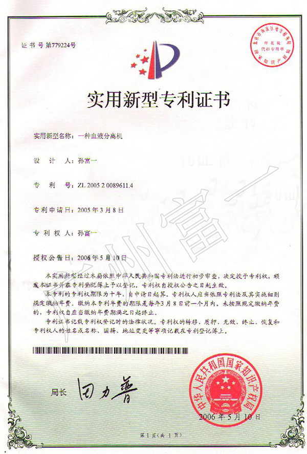 1:血漿收益率高,分離過程中把血球的破碎率降至最低。