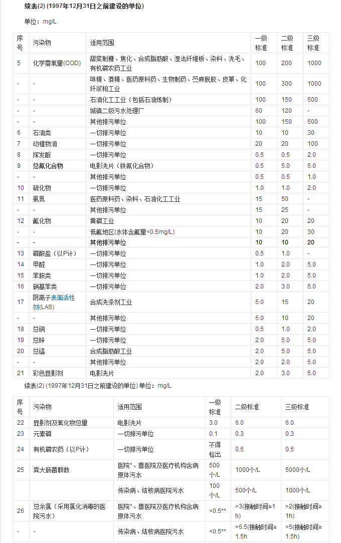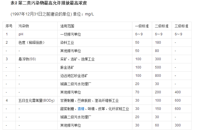 按照國家綜合排放標(biāo)準(zhǔn)與國家行業(yè)排放標(biāo)準(zhǔn)不交叉執(zhí)行的原則,造紙工業(yè)執(zhí)行《造紙工業(yè)水污染物排放標(biāo)準(zhǔn)(GB3544-92)》,船舶執(zhí)行《船舶污染物排放標(biāo)準(zhǔn)(GB3552-83)》,船舶工業(yè)執(zhí)行《船舶工業(yè)污染物排放標(biāo)準(zhǔn)(GB4286-84)》,海洋石油開發(fā)工業(yè)執(zhí)行《海洋石油開發(fā)工業(yè)含油污水排放標(biāo)準(zhǔn)(GB4914-85)》,紡織染整工業(yè)執(zhí)行《紡織染整工業(yè)水污染物排放標(biāo)準(zhǔn)(GB4287-92)》,肉類加工工業(yè)執(zhí)行《肉類加工工業(yè)水污染物排放標(biāo)準(zhǔn)(GB13457-92)》,合成氨工業(yè)執(zhí)行《合成氨工業(yè)水污染物排放標(biāo)準(zhǔn)(GB13458-92)》,鋼鐵工業(yè)執(zhí)行《鋼鐵工業(yè)水污染物排放標(biāo)準(zhǔn)(GB13456-2012)》,航天推進(jìn)劑使用執(zhí)行《航天推進(jìn)劑水污染物排放標(biāo)準(zhǔn)(GB14374-93)》,兵器工業(yè)執(zhí)行《兵器工業(yè)水污染物排放標(biāo)準(zhǔn)(GB14470.1~14470.3-93和GB4274~4279-84)》,磷肥工業(yè)執(zhí)行《磷肥工業(yè)水污染物排放標(biāo)準(zhǔn)(GB15580-95)》,燒堿、聚氯乙烯工業(yè)執(zhí)行《燒堿、聚氯乙烯工業(yè)水污染物排放標(biāo)準(zhǔn)(GB15581-95)》,其他水污染物排放均執(zhí)行本標(biāo)準(zhǔn)。